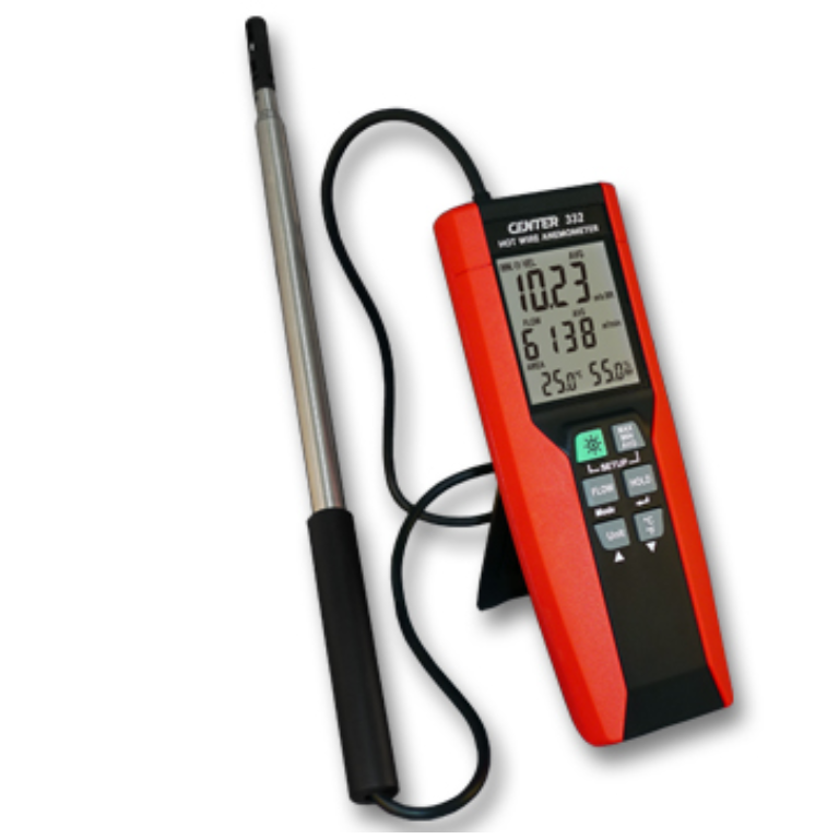 Máy đo tốc độ gió bằng dây nóng CENTER 332 là thiết bị đo lưu lượng gió và tốc độ không khí trong hệ thống thông gió (HVAC), ống gió, hệ thống hút/thoát khí và các ứng dụng đo khí động bên trong nhà máy, nhà xưởng. Nó đo đồng thời nhiệt độ, độ ẩm, và tốc độ gió / lưu lượng — rất phù hợp cho kỹ sư môi trường, bảo trì, hệ thống HVAC.